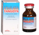 Bileşimi Her ml de; 50 mg Fluniksin (Fluniksin meglumin) içeren enjeksiyonluk bir çözeltidir. Kullanım yeri Sığır ve atlarda anti-endotoksik, anti-piretik özelliklere sahip non-steroidal anti-enflamatuvar (NSAID), non-narkotik analjezik olarak kullanılır. Sığır: Enfeksiyöz hastalıklara bağlı akut enflamasyonlarda, endotoksik şok, kolibasillosis, pneumonia ve kronik obstrüktif solunum sistemi hastalıklarıyla ilgili akut enflamasyonların tedavisinde; akut sığır pulmoner amfizemi (fog fever), akut mastitis tedavilerinde anti-enflamatuvar olarak kulanılır. At: İskelet-kas sistemi ile ilişkili enflamasyon ve lokomotor bozukluklardan ileri gelen ağrılarda ve kolikten ileri gelen visseral ağrının azaltılmasında endikedir. Kullanım şekli ve Dozu Sığır ve atlarda damar içi (IV ) veya kas içi (IM) yolla uygulanır. Sığır: 2 ml / 45 kg (2.2 mg/kg); Enflamasyonun durumuna göre gerekirse 24 saat aralıklarla 5 gün kullanılabilir. Yangıdyn uygulamasına ilaveten, akut yangıya neden olan etkenlere yönelik uygun bir sağaltım yapılmalıdır. At: Kas-iskelet sistemi bozukluklarında; 1 ml / 45 kg (1.1 mg / kg) ; klinik cevaba göre gerekirse 24 saat aralıklarla 5 gün süreyle kullanılabilir. Kolik’de; 1 ml / 45 kg (1.1 mg / kg) ; kolik semptomları tekrarlar ise tedavi 1-2 kez tekrarlanabilir. Yangıdyn uygulamasına ilaveten kolik nedeni tayin edilmeli ve buna yönelik uygun sağaltım yapılmalıdır. Gastrointestinal kanala kan akışının bozulduğu gastrik torsiyon veya diğer sebeplerle ilişkili endotoksemi veya septik şok olgularında önerilen doz ise; 1 ml / 200 kg (0.25 mg/kg) dır, uygulama 6-8 saat aralıklarla yapılır. |