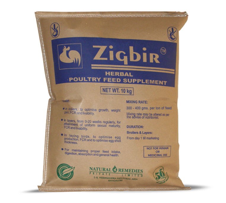 Zigbir, karaciğer koruyucu özelliği bilinen bitkisel etken maddelerin sinerjik, güçlü karışımından oluşur. Zigbir’in etken maddelerinden olan Andrographolide, A.paniculata’nın diterpenoid laktonudur ve dünyadaki en iyi karaciğer koruyuculardan biriolduğu bilimsel çalışmalarla raporlanmıştır. Karaciğer fonksiyonlarını iyileştirir Mikotoksinlerin ve kimyasal etkilerin zararlı etkilerine karşı korur Yağda eriyen vitaminlerin ve pigmentlerin kullanımını optimize eder. Besin maddelerinden yararlanımı artırır. Sindirimi, emilimi ve sürünün genel sağlığını optimize eder. Verim parametreleri üzerine etkisi Vücut ağırlığını FCR’yi ve canlılığı optimize eder Yumurta üretimini, yumurta kabuğu kalınlığını optimize eder. Ayrıca; Yeme iyi karışır Termostabildir Antibiyotik Büyütme Faktörleri gibi kalıntı sorununa yol açmaz Toksik değildir, doğada kolay yıkımlanır İlaç direnci ve çapraz dirence yol açmaz ZİGBİR, hem yumurtacılarda hem broylerde yüksek verim parametrelerine ekonomik olarak ulaşmayı sağlar. |